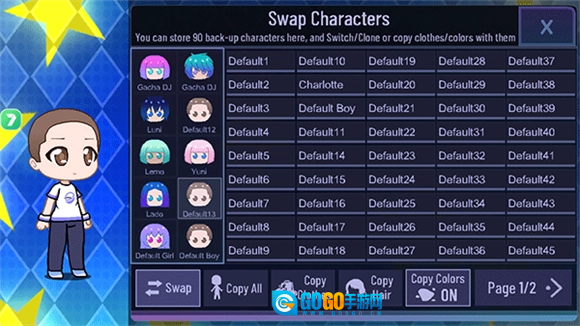 2、这里有一排用于保存人物的编号,你可以随意选择一个,点击之后你的人物就会变回初始的小男孩形象。