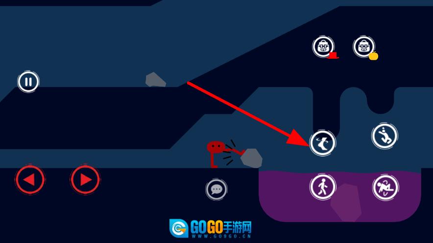 当遇到石头障碍时,点击对应的踢击按钮,使角色将石头踢开,清除行进途中的阻碍,保障角色能够继续朝着目标移动。
