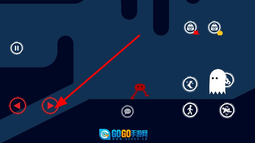 1、点击界面左侧的前进按钮,让角色在场景里朝着目标方向移动,这是开启关卡挑战的第一步,能为后续操作打好基础。