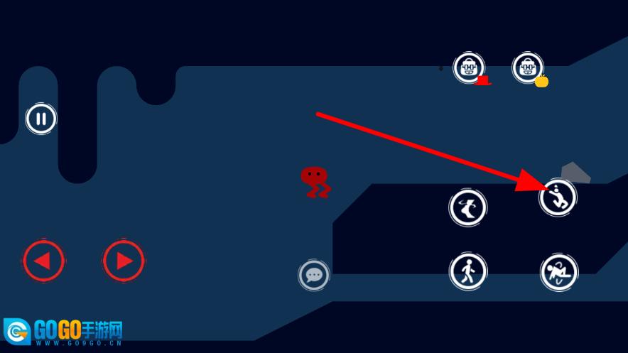 3、当遇到需要跨越的间隙或是要抵达更高处时,点击跳跃按钮就能让角色跃起,从而顺利通过这类地形,继续向着关卡目标推进。