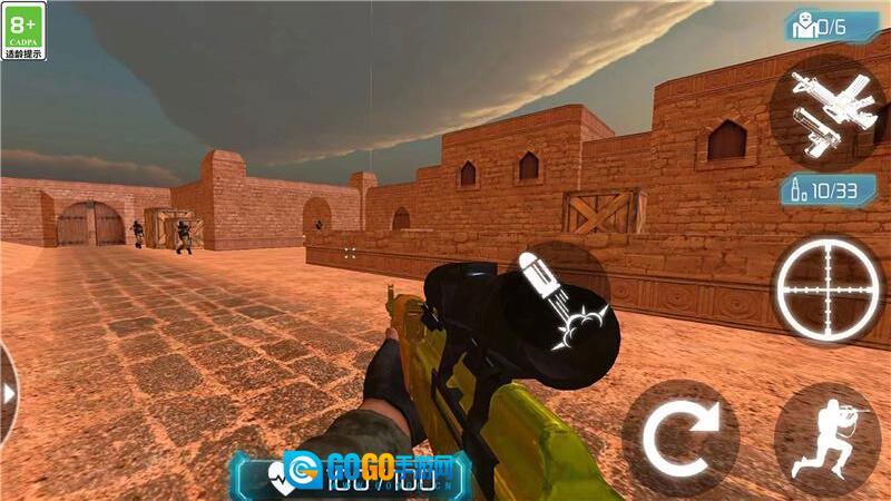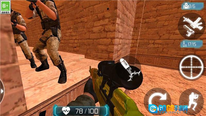 1、控制游戏角色,运用各式各样的武器,在巷战、荒野等不同类型的战场中射击敌人,以此推动关卡进度。
