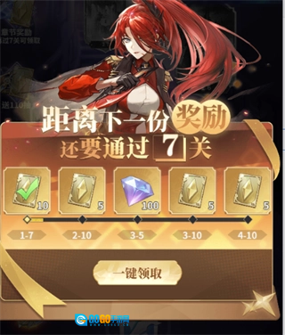 每通过5关就能领取钻石,每完成10关可得到10张黄卡用于武姬招募,这是前期稳定获取角色的重要方式。