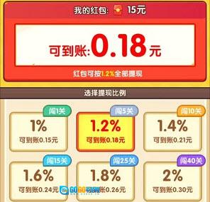 2、红包是按百分比提现的,闯关可提高兑换比例。