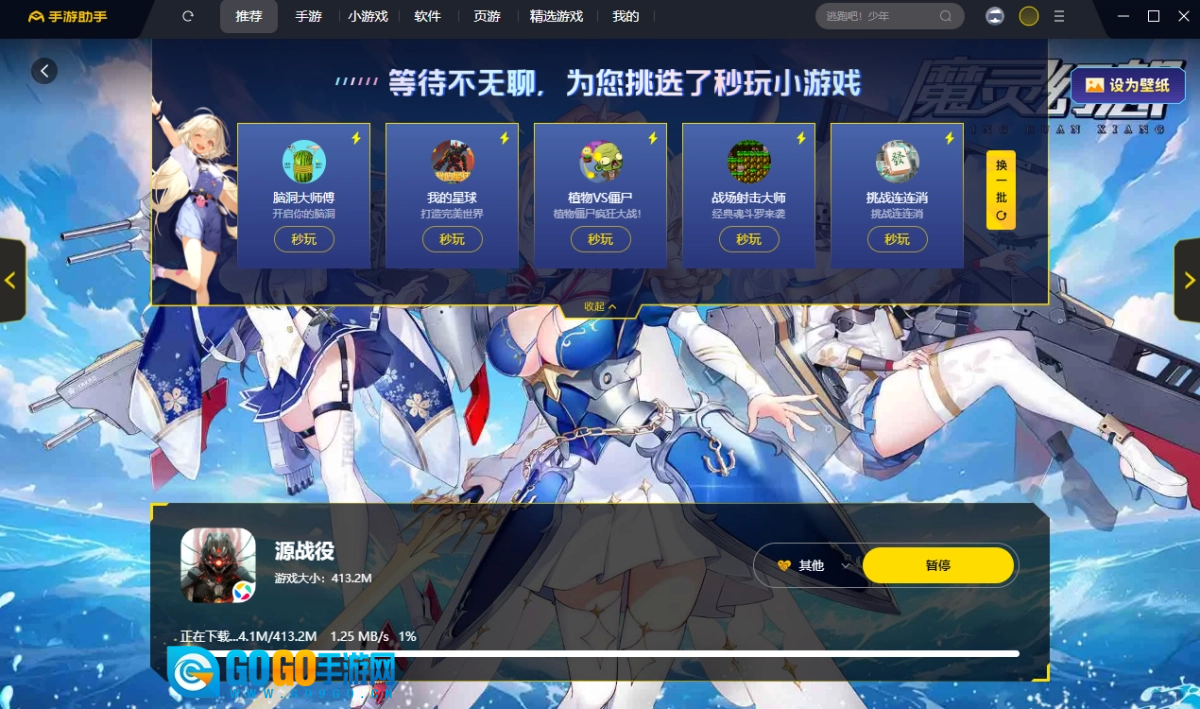 ;启动360助手,等待游戏自动安装完成;