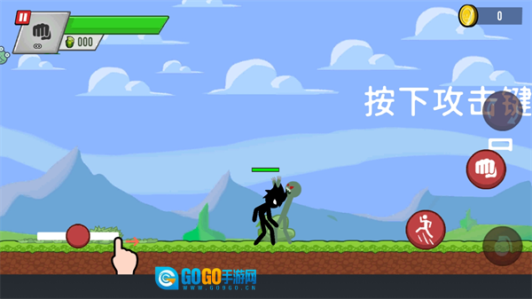 1、控制你的角色向右移动,碰到敌人就挥拳攻击,通过快速冲刺来打出致命一击。