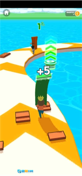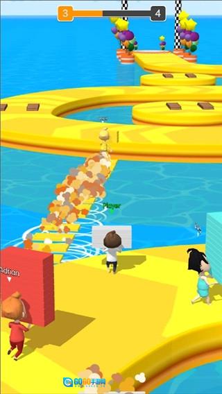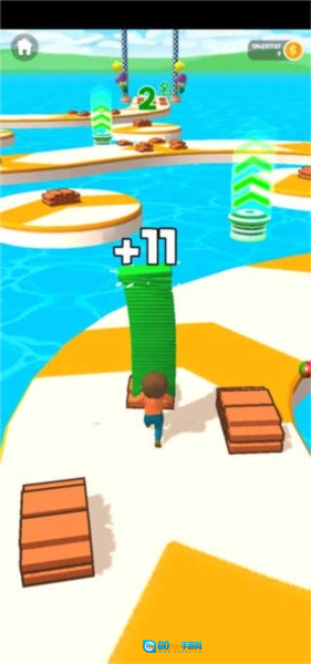 1、收集沿途的地板,搭建桥梁跨越水面,创造捷径直达终点!