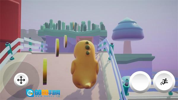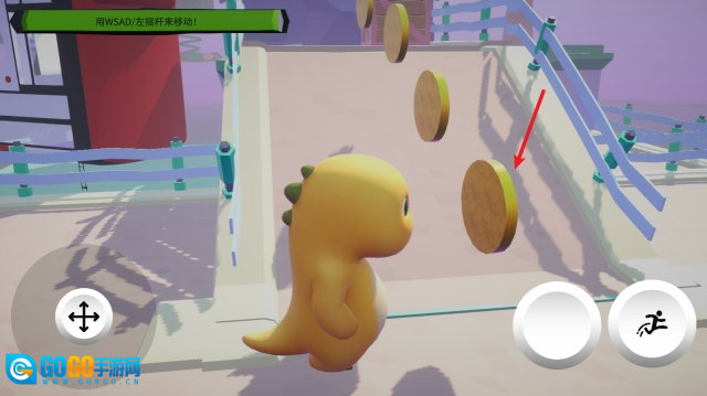 3、操作奶龙收集全部金币。然后按跳跃键跳上去。