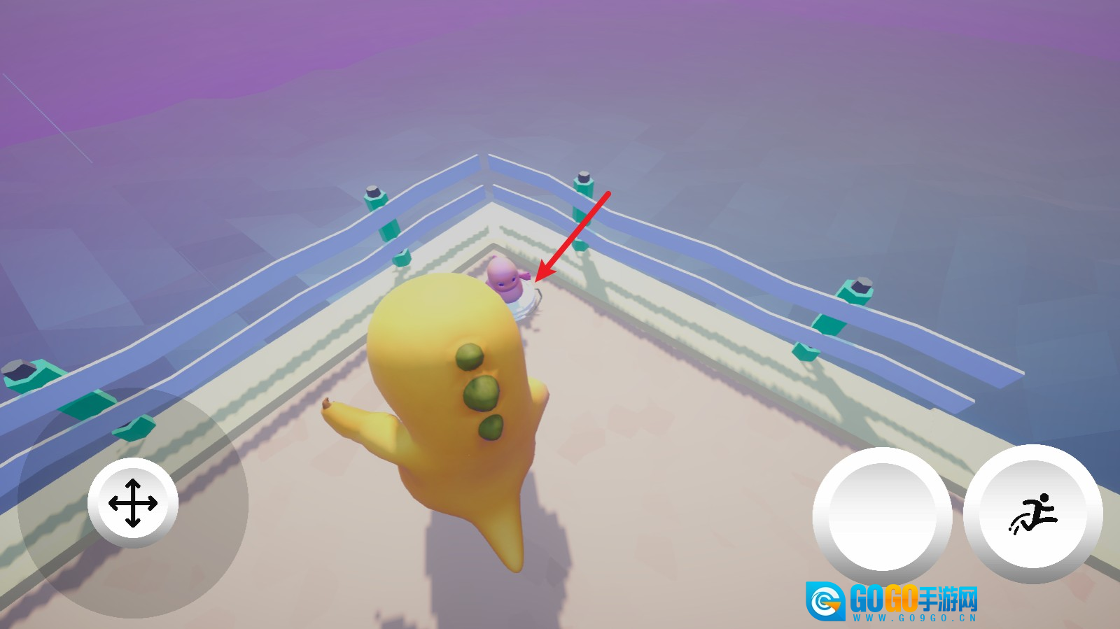 进入游戏后,我们会直接出现在地图里,左边的摇杆用来操控移动,最右边的按钮则能实现跳跃动作。