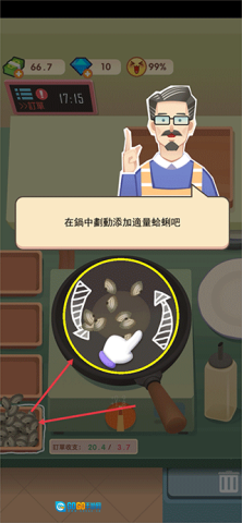 4、依据顾客的需求,从左边的食材区域选取对应的食材放入锅中。