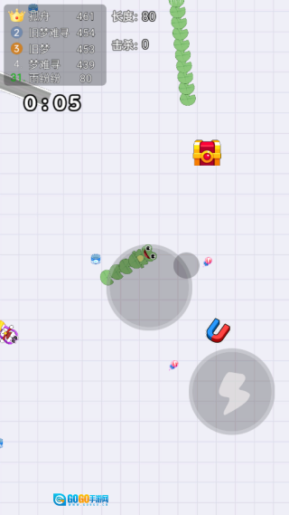 2、利用方向键来控制蛇头的移动方向,在前进途中收集钻石和各类道具,并且可以通过吞噬体型较小的对手来让自身快速成长。