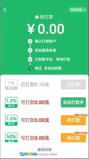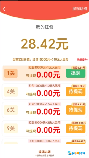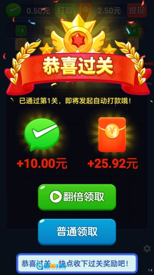 4、通过特定关卡可直接获取红包,比如完成第一关就能得到0.1。