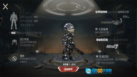 2、角色具备多种技能,例如动力突进技能可以启动装甲的喷射装置实现短时间飞行,并且该技能还能持续修复装甲所受的损伤。