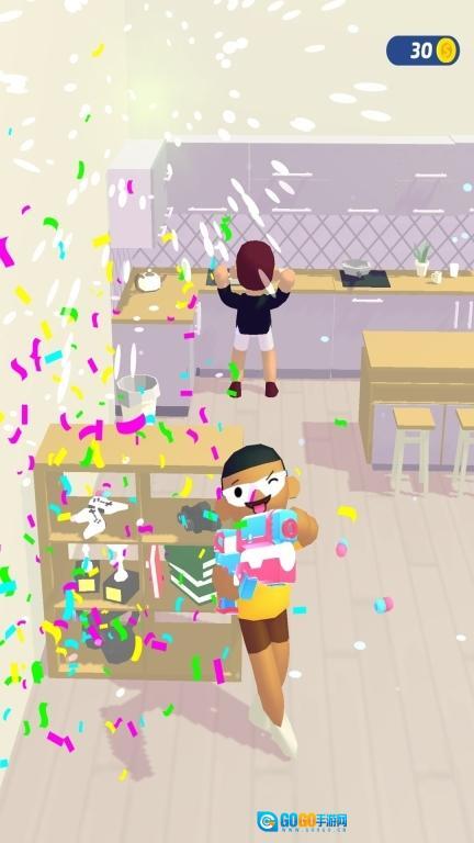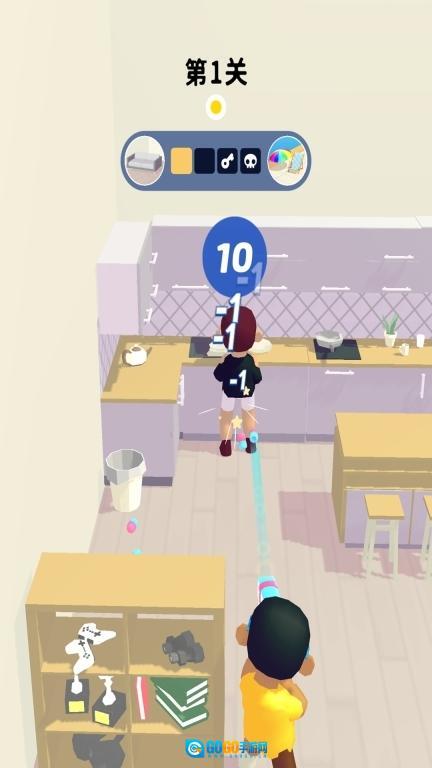 2.这款游戏把舞台搭建在了日常的家居环境里,玩家需要操控玩具枪,在熟悉的生活场景中开启一连串充满趣味的“偷袭”挑战。
