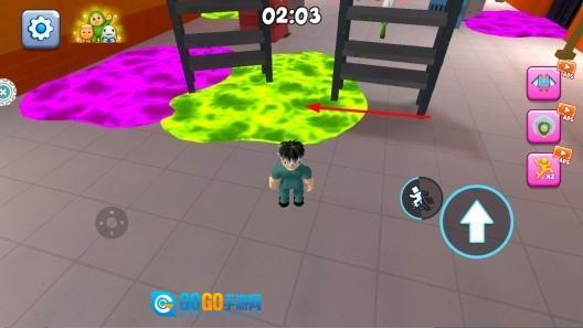 4、在场景中会出现彩色的液体区域,需要操控角色躲开这些区域,避免受到影响,从而顺利朝着逃脱的目标行进。