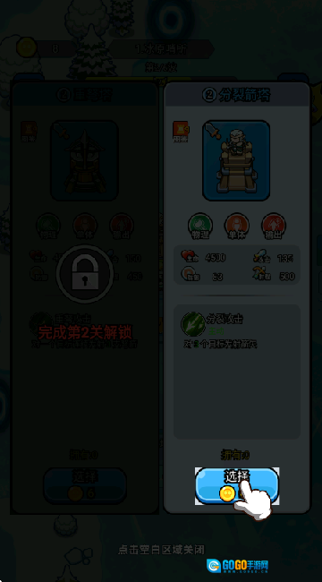 3、站在下方的方块上面保持不动,就能快速提升你的防御塔等级。