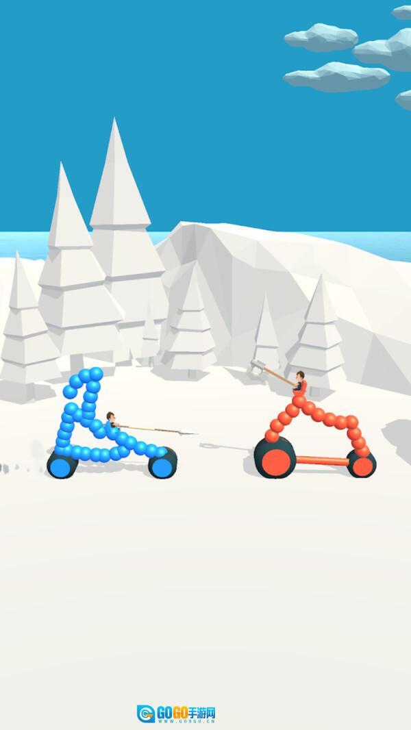 玩家能够自由绘制战车,创作过程没有任何限制。完成绘制后,这辆战车会变成一台小型攻击战车,与对手展开战斗。玩家需要滑动屏幕来操控战车向前发起攻击,同时手中还配备一根长矛,目标是将对手的血量彻底消耗完毕。