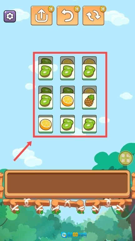 2、进入水果卡牌界面后,留意卡牌的分布情况,找出相同的水果卡牌,按照移动或匹配的规则进行操作,消除卡牌以推进关卡进度。