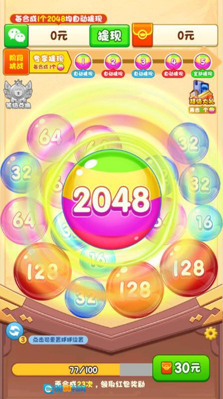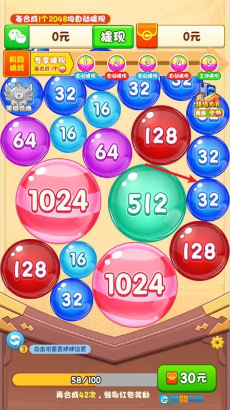 2. 登录成功后,在关卡里,点击两个数字相同的小球就能合成更高等级的小球。