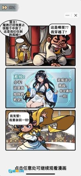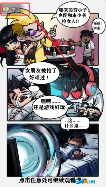1、启动本站的游戏,进入游戏界面后能看到一段趣味十足的漫画。