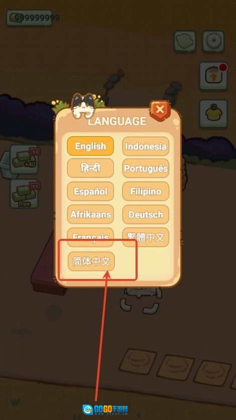 2、玩家可以在这里找到简体中文的选项。