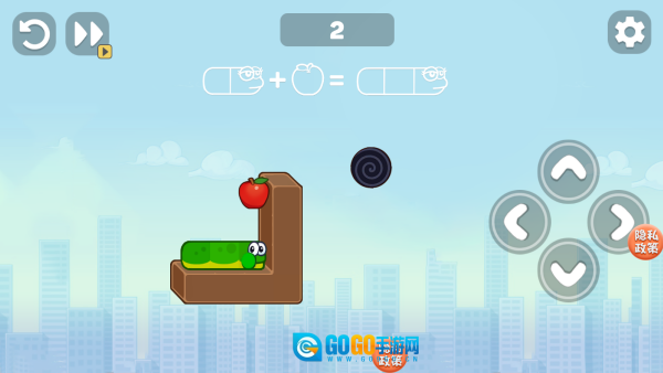 2、通过滑动屏幕来操控小蛇的行进方向,目标是吃掉场景里出现的苹果。