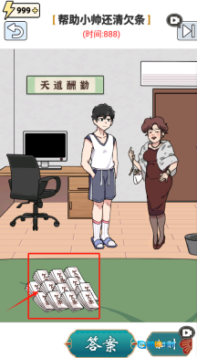 1、点击“负债的小帅”关卡,查看帮助小帅偿还债务的任务说明,需在888秒内完成该任务。
