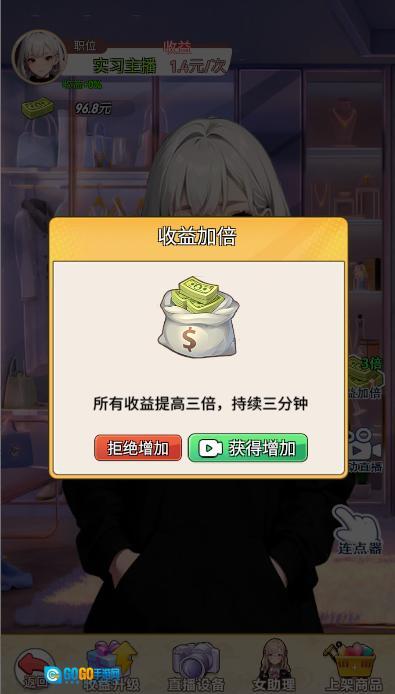 3、要是手头没钱了,那就只能去做实习主播了。你可以在这里开一个点击器,不用看广告,等一个小时就可以了。