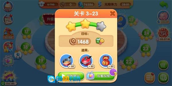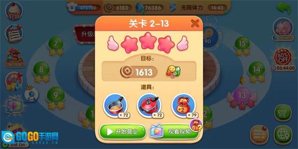 3、当然啦,如果遇到没完成的关卡也别灰心,可以先去升级厨房再重新挑战,或者在闯关时用道具来轻松通关。