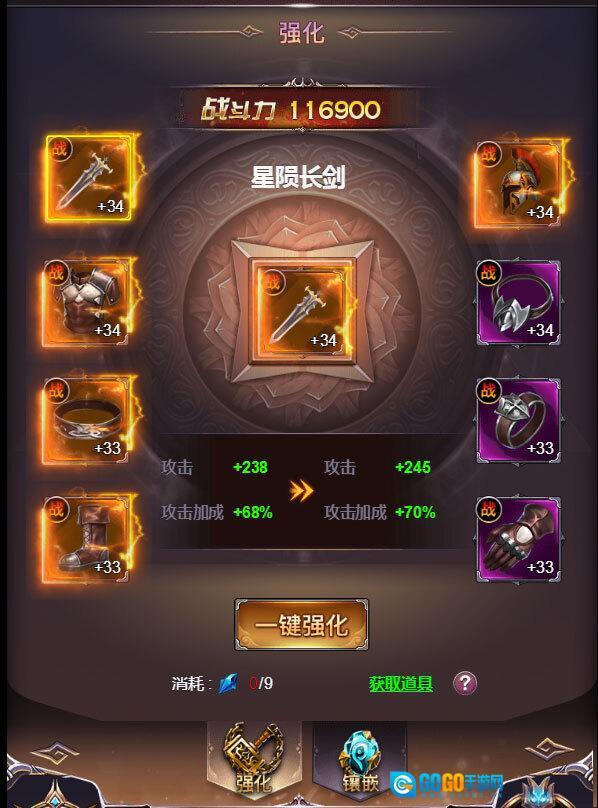 3、武器强化:消耗强化晶石可提升武器的强化等级,等级提升后装备属性也会随之增加。
