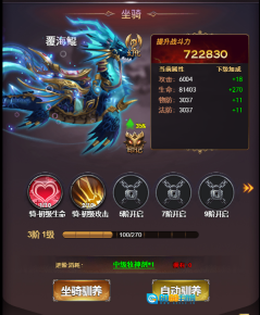 3、坐骑培养:通过培养坐骑,使其成为战斗中的强大助力!使用初级牧神剂、中级牧神剂、高级牧神剂能够提升坐骑属性,助力坐骑成长。
