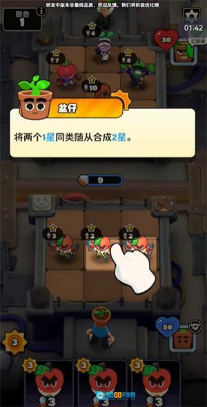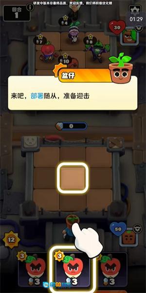 1、进入游戏后,快速挑选下方的植物英雄,将其拖拽至上方的格子里,这样就能开启战斗,但每次操作都会消耗定量的金币。