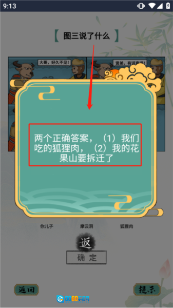 ps:两个正确答案,(1)我们吃的狐狸肉(2)我的花果山要拆迁