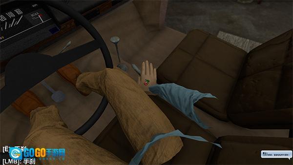 3、上车后对准手刹,按下“e”键拉起手刹;