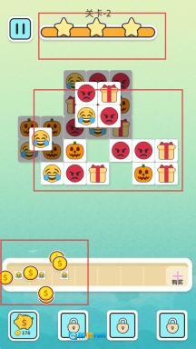 3、游戏过程中,通过消除表情方块来获取金币,积攒一定数量后,就能在商店里购买道具,为后续的关卡挑战提供帮助。