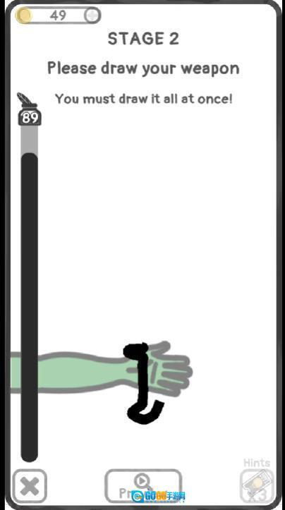1、每一关开启前,玩家要在画布上勾勒出武器的轮廓,系统会自动把它转换成能够使用的兵器。