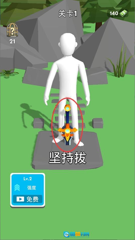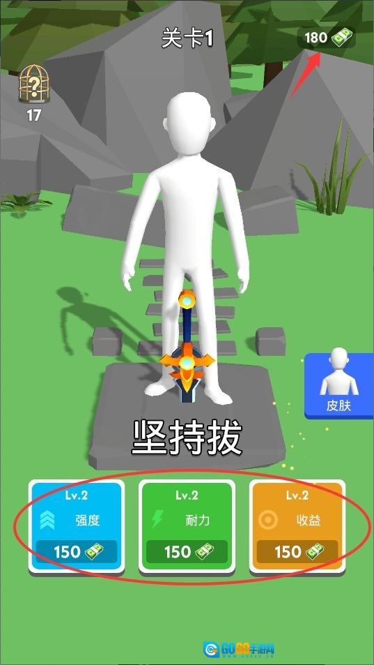 3、成功拔出圣剑能得到金币奖励,攒够金币就可以提升力量属性,之后的关卡拔剑会更轻松高效。