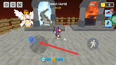 1、进入游戏后,注意观察界面右侧带有跑步按钮标识的人形图标,点击该图标即可让角色进入加速奔跑状态,从而在各个传送门之间快速穿梭。