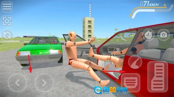 1、玩家要挑选合适的车辆,接着把假人安放在驾驶座上,借助左下角的两个按键来操控车子向左或向右移动。