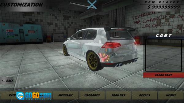 4、最下方设有多项功能,例如更改车辆颜色、更换零件等。