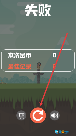 3、要是挑战没能成功,在失败的界面上,点击那个红色的重玩按钮,就能重新进入关卡,再一次尝试射中目标。
