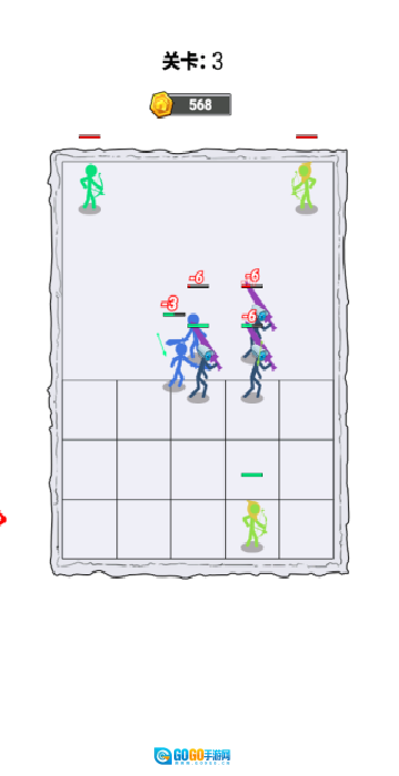 1、玩家可将等级相同的火柴人士兵进行合并,以此提升士兵的等级与战斗力(例如把普通士兵合成为精英士兵)。