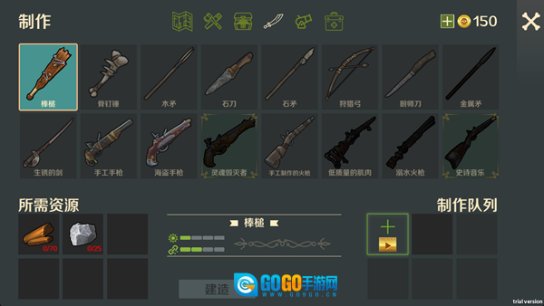 3、武器,食物优先出来,水也必须尽快制作出来。