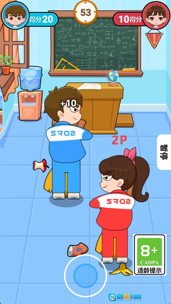 3、进入扫除环节,操控角色清理教室中的垃圾,需在限定时间内完成任务,清理的垃圾数量越多,最终得分就越高。