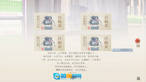 4、把需要购买的道具全都买齐,反正鲜花是无限的,这样才能体验到完整的玩法内容。