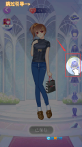 2、点击红框浅蓝上衣图标,为角色更换新服装。