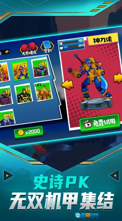《乱斗荒野明星赛》是一款主打热血勇者格斗的冒险游戏。在充满童趣的卡通世界里,你可以招募形形色色的机甲战士并肩作战。游戏中每一关都设有独特的挑战任务,唯有玩家全身心投入战斗,才有机会顺利通关。而随着剧情的逐步展开,更强大的对手也将接踵而至,等待你去一一战胜。