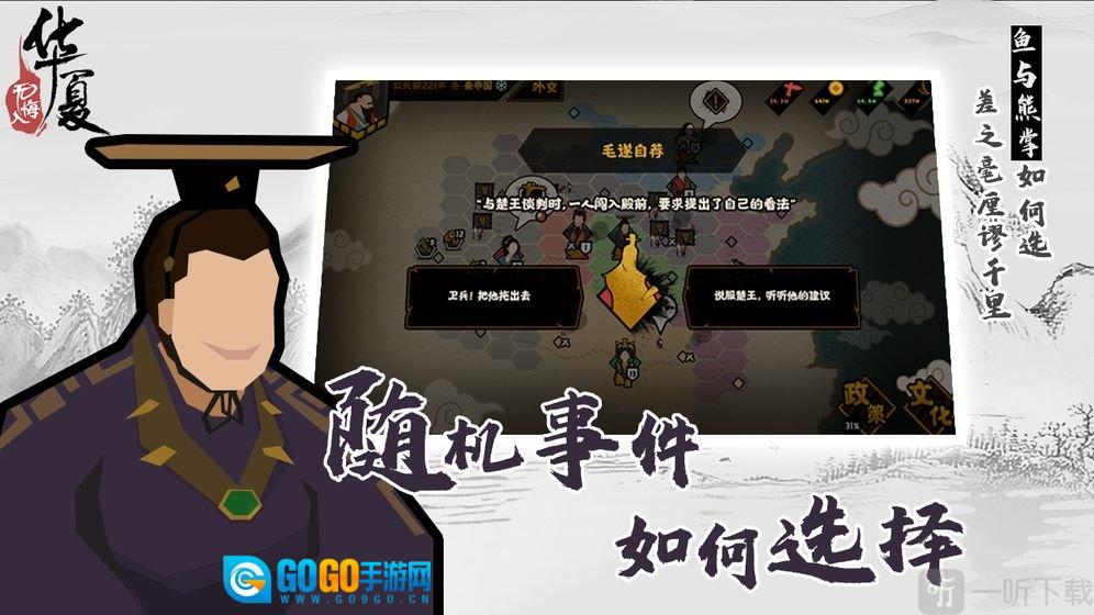 《无悔入华夏》最新版本是一款以中国历史为核心主题的国家战略类游戏,整体采用了极具东方韵味的中国水墨美术风格,力求为玩家打造别具一格的战略游戏体验。在游戏里,玩家将化身为一代君主,需要为自己的城邦制定合适的国家政策,持续招募士兵、壮大军队,最终率领麾下将士开创独属于自己的辉煌盛世!