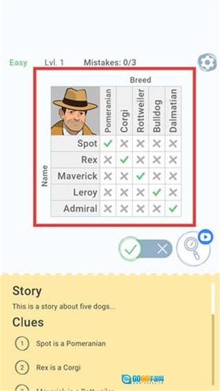 3. 待所有问题都填入既自洽又契合所有线索的答案后,就能通过本关卡并解锁下一个谜题。
