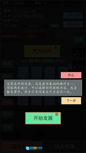 2、这里是初始发展阶段,用银两操作是最基础的方式之一,你可以选择自己想要的内容,过程中还会触发相关事件。