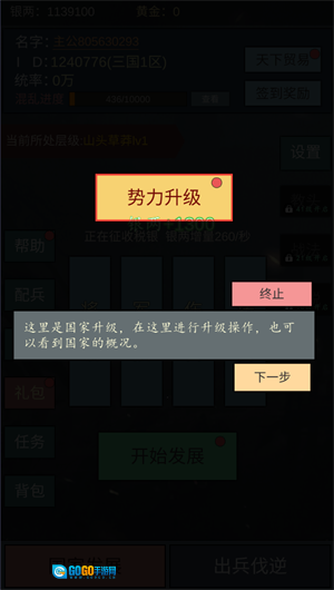 3、此处为国家升级功能区,您可在此执行升级操作,同时也能查看国家的相关概况信息。
